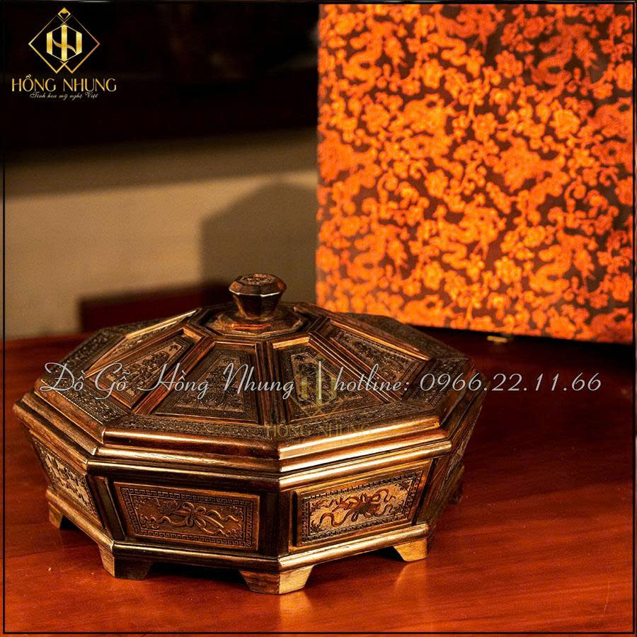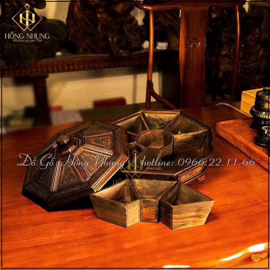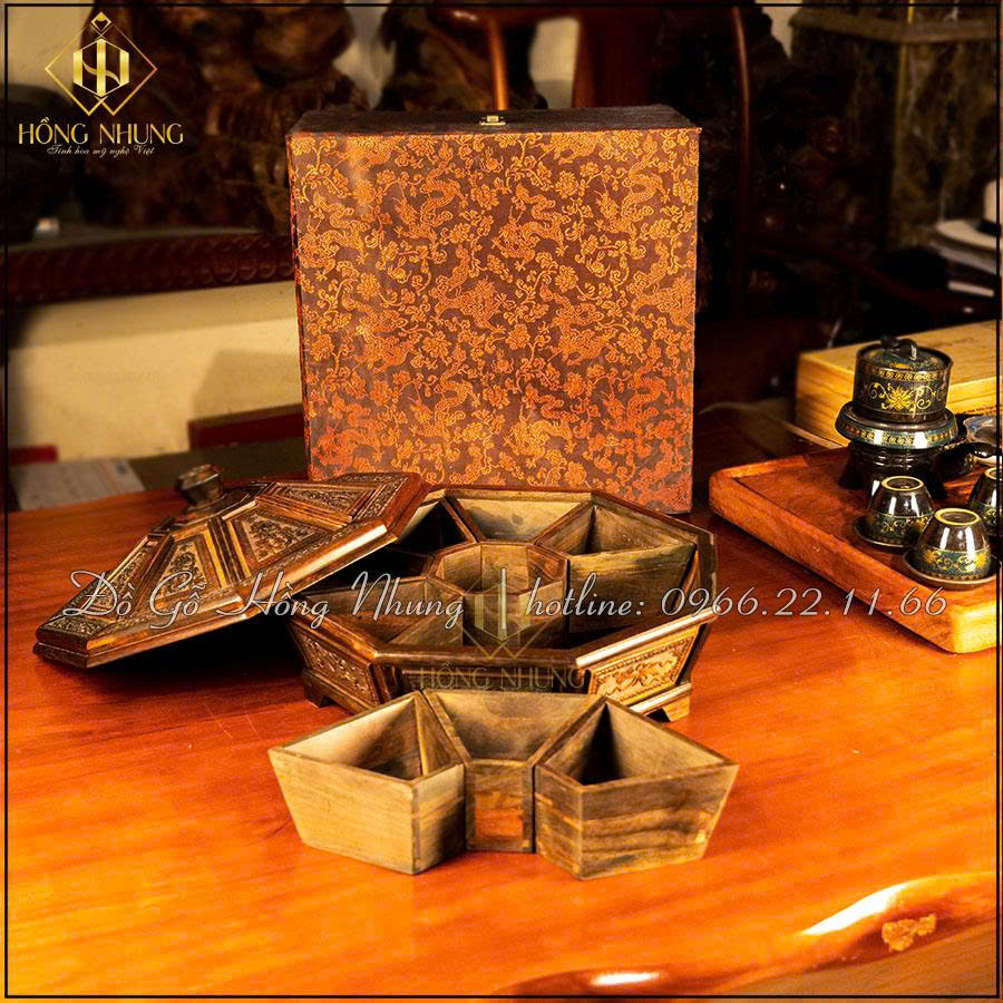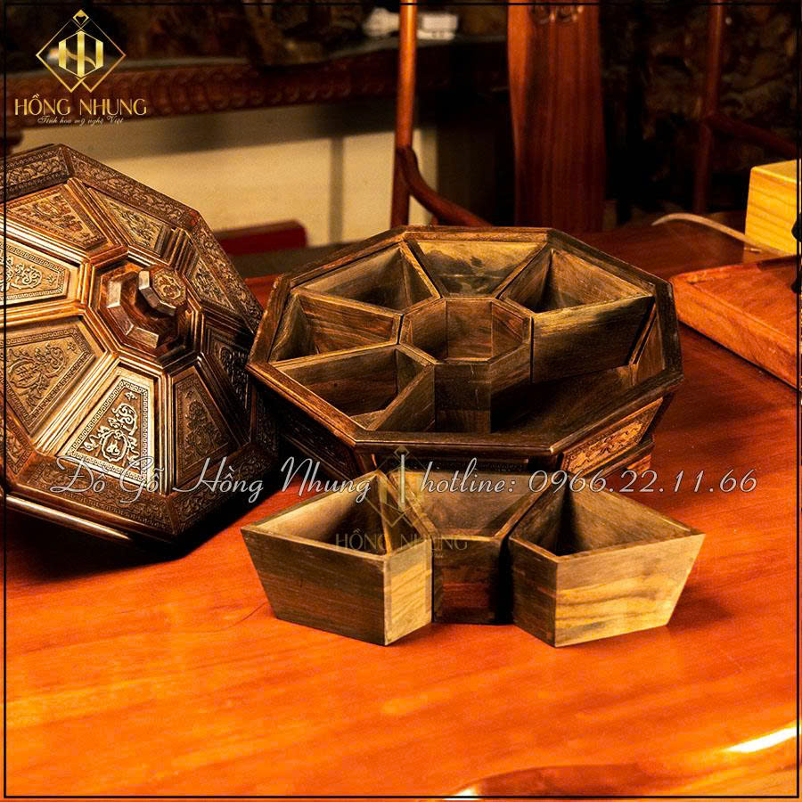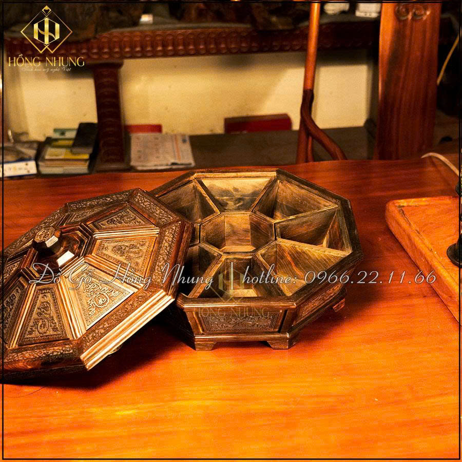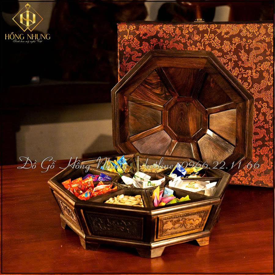 Hộp mứt gỗ trắc tròn 9 ngăn