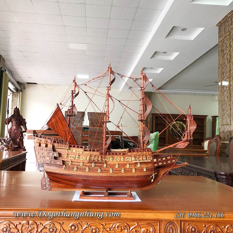 Mô hình thuyền buồm gỗ hương dài 60cm loại VIP