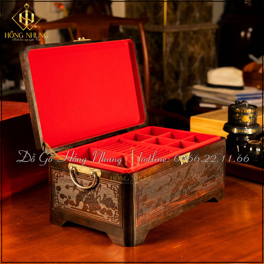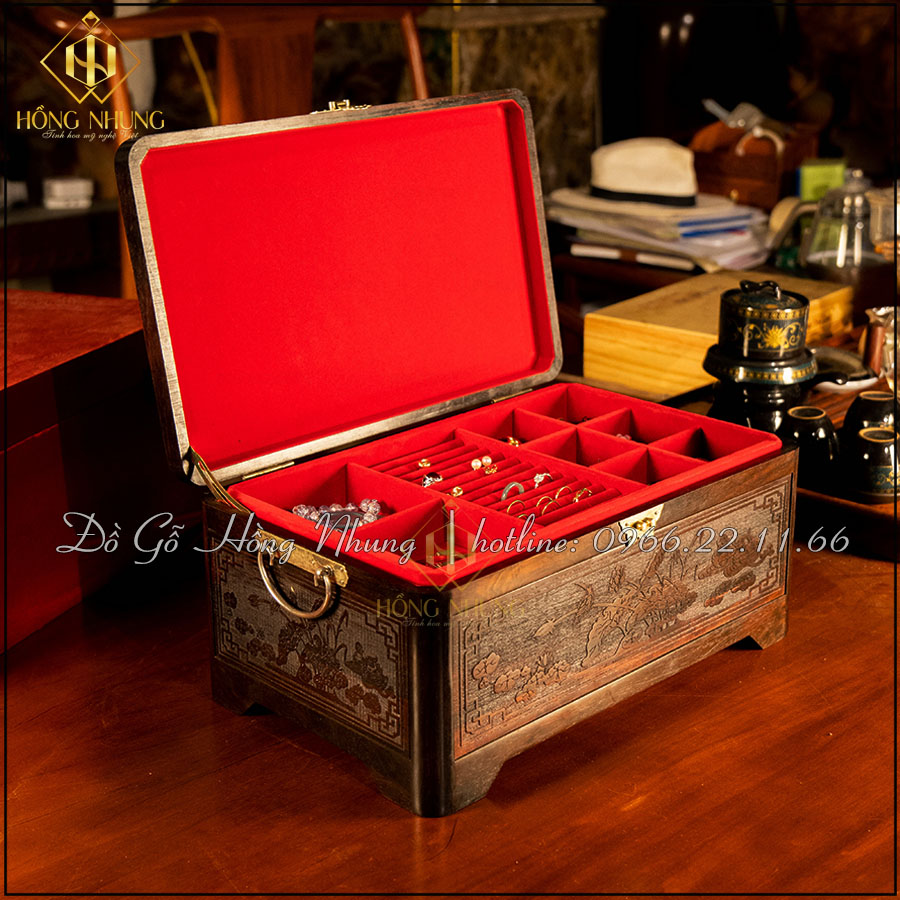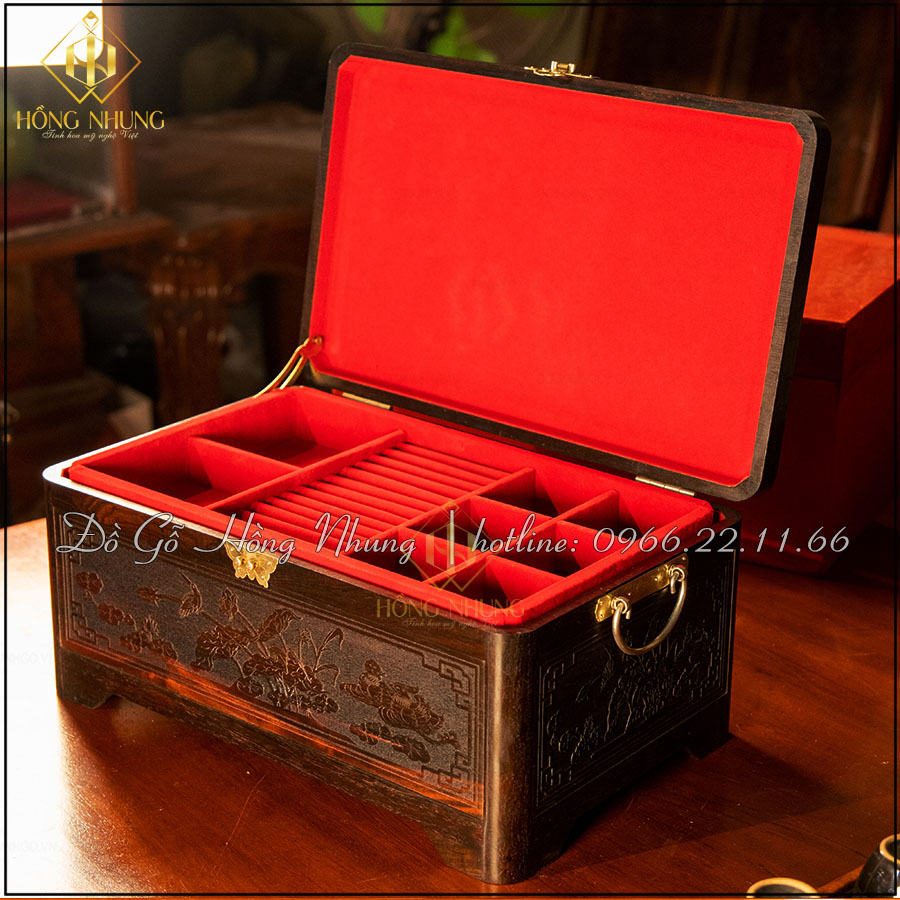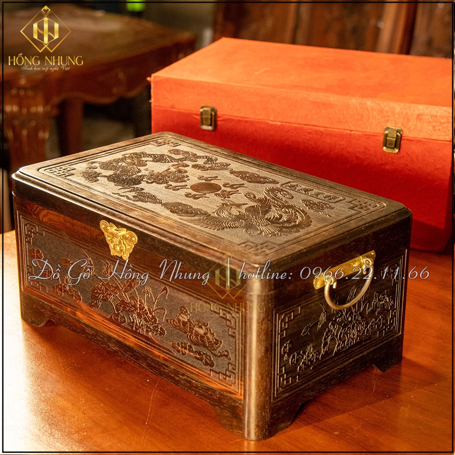 Hộp đựng trang sức gỗ trắc cao cấp dài 40cm không chỉ là vật dụng chứa đồ mà còn là biểu tượng của sự tinh tế, sang trọng và giá trị lâu dài. Từ chất liệu gỗ quý, thiết kế chạm khắc đẹp mắt đến công năng linh hoạt như đựng nữ trang hay làm tráp hầu đồng – tất cả tạo nên một sản phẩm xứng đáng hiện diện trong không gian sống đẳng cấp.