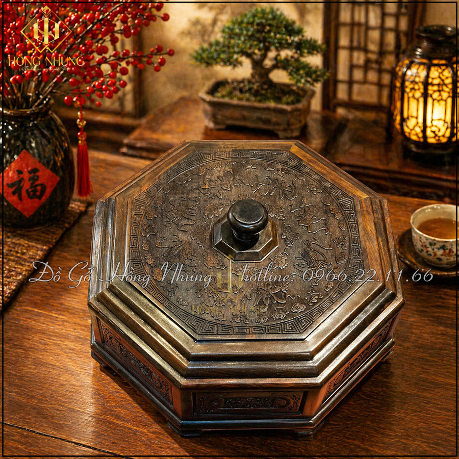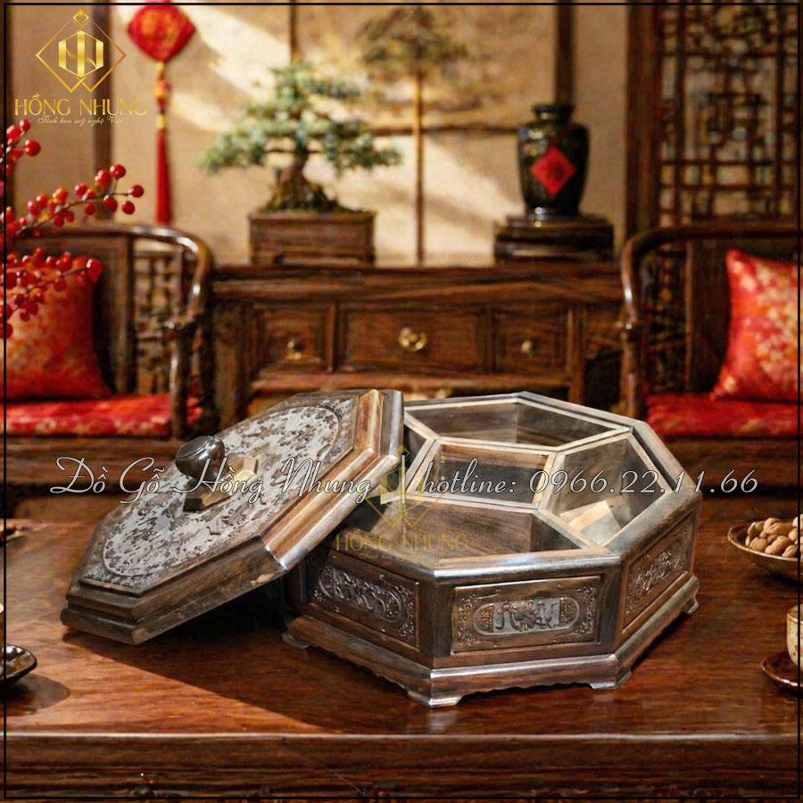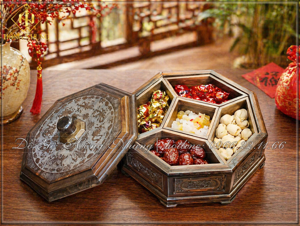 Trong mỗi gia đình Việt, đặc biệt vào dịp lễ Tết, khay đựng mứt không chỉ là vật dụng dùng để bày bánh kẹo, hạt khô hay mứt trái cây mà còn là điểm nhấn quan trọng trên bàn trà. Một chiếc khay đẹp thể hiện sự chỉn chu, gu thẩm mỹ và sự hiếu khách của gia chủ. Nếu bạn đang tìm kiếm một sản phẩm vừa tiện dụng, vừa có giá trị thẩm mỹ cao thì khay đựng mứt gỗ trắc 5 ngăn chính là lựa chọn lý tưởng.