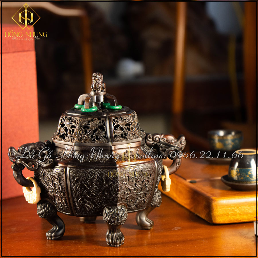 Lư xông trầm bát giác rồng gỗ trắc — Tinh hoa thủ công, hương thơm an nhiên cho không gian