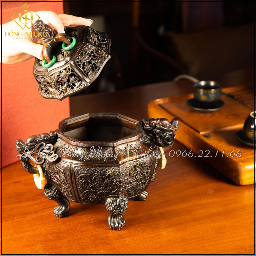 - Lư xông trầm bát giác rồng gỗ trắc – tinh hoa thủ công từ gỗ quý hiếm.