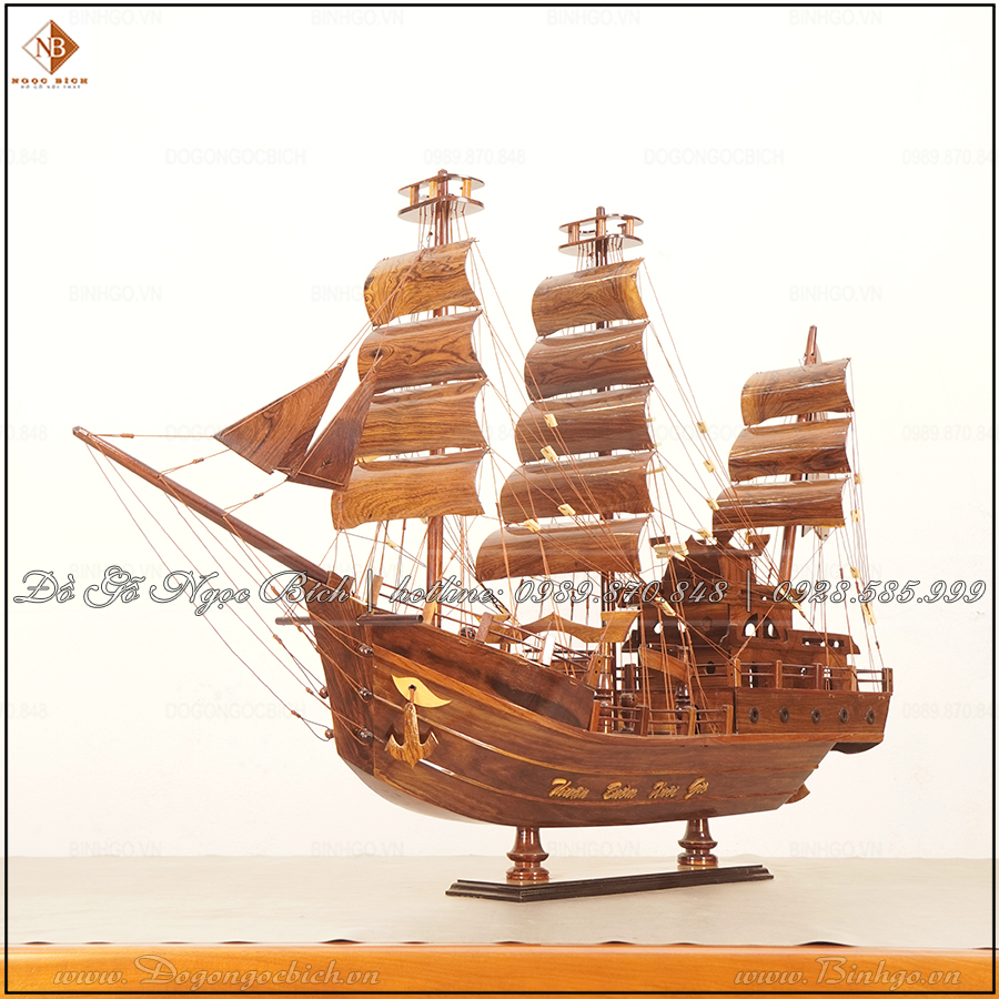 Thuyền Buồm Gỗ Cẩm Thủ Công Cao Cấp – Biểu Tượng Thuận Lợi & Hưng Thịnh Trong Kinh Doanh