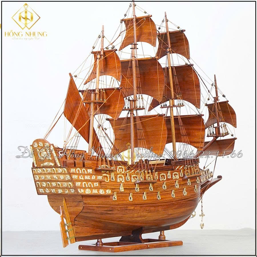 Thuyền buồm phong thủy Gỗ Hương 60cm là mẫu thuyền trang trí cao cấp, được nhiều khách hàng lựa chọn để trưng bày trên bàn làm việc, kệ tủ phòng khách hoặc làm quà tặng phong thủy ý nghĩa. Sản phẩm mang hình ảnh con thuyền no gió ra khơi, biểu trưng cho sự hanh thông, thuận lợi trong công việc và kinh doanh, đồng thời nổi bật nhờ chất liệu gỗ Hương tự nhiên sang trọng.